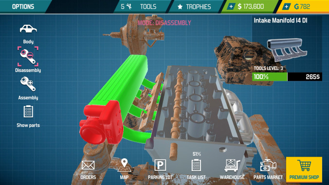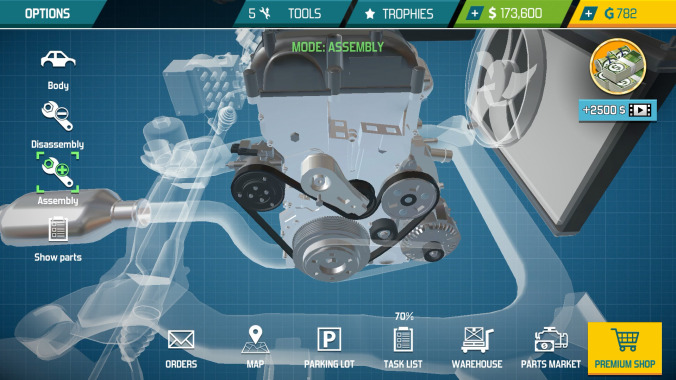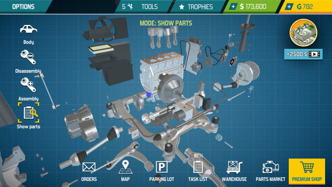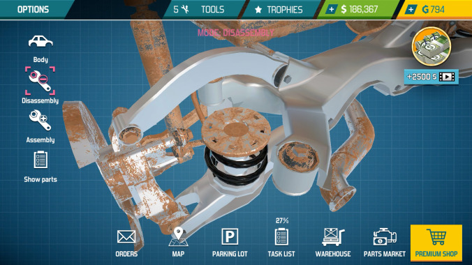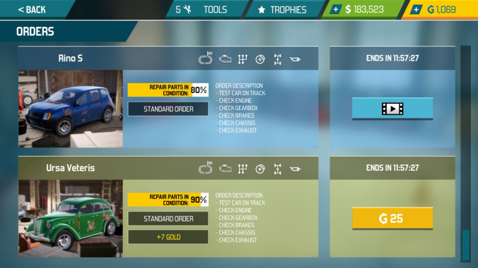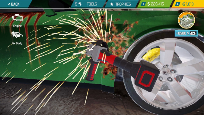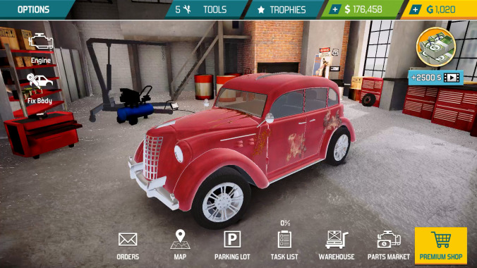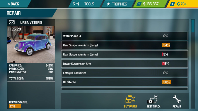 Repair engine, brakes, exhaust, gearbox, and chassis.